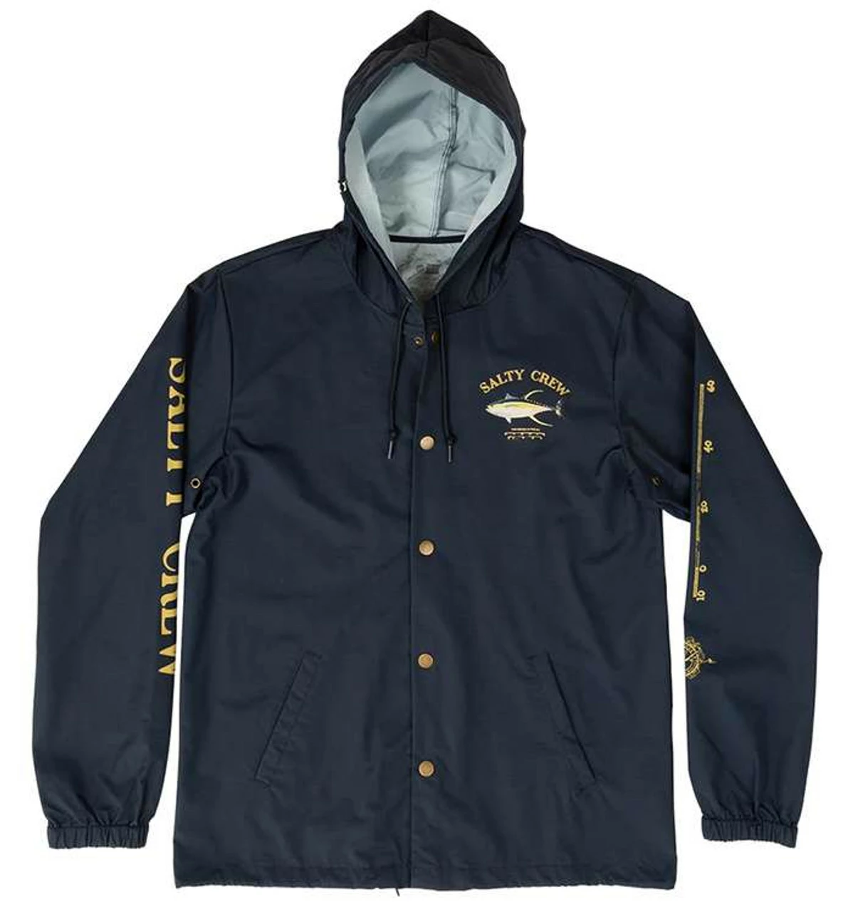 The Salty Crew Ahi Mount Snap Jacket is made with 5K 100% nylon material. It’s a full snap up style jacket featuring Salty Crew logo design across the back with Salty Crew text design down both sleeves. The fabric of this jacket is 100% waterproof but the seams are not, making this jacket water resistant.