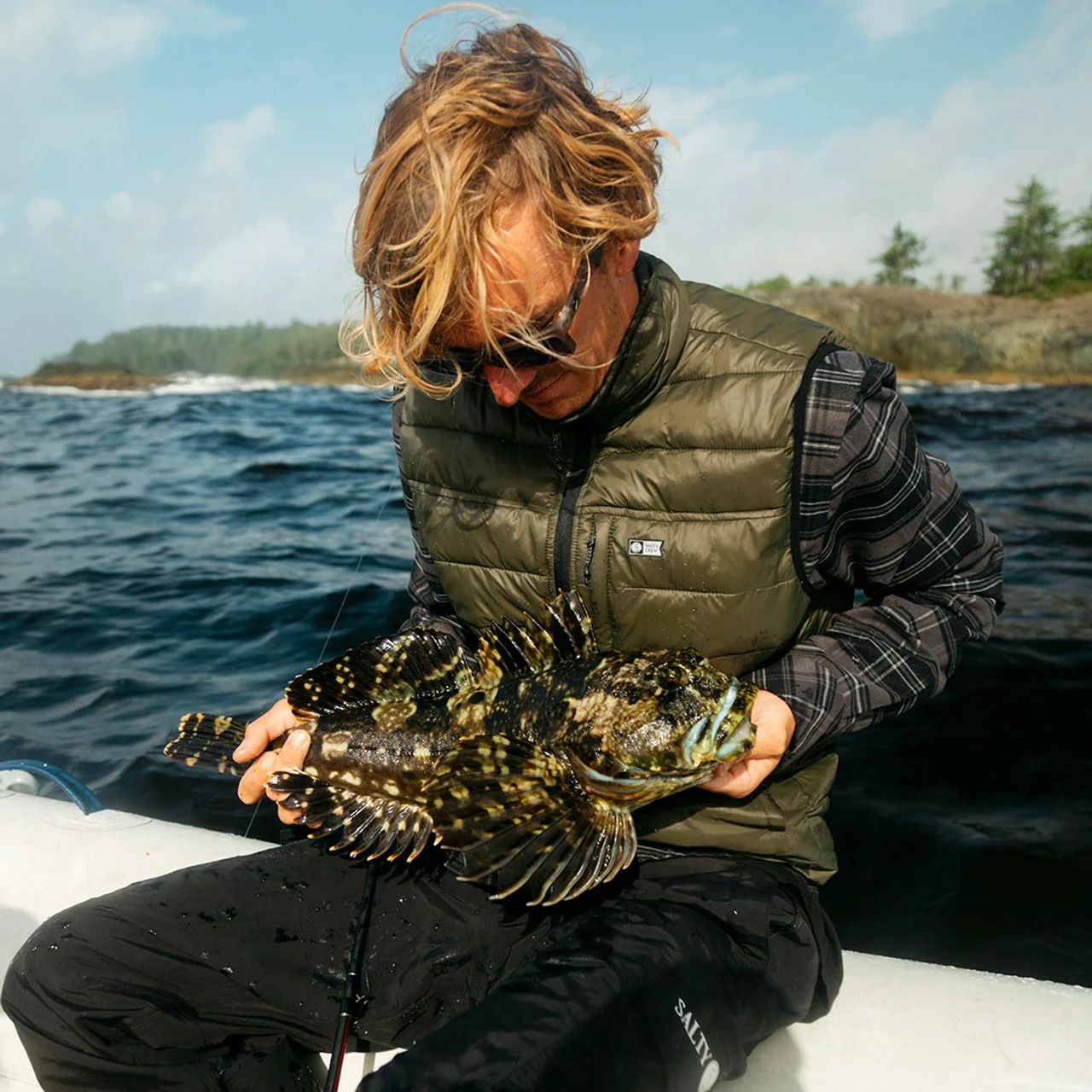 The Salty Crew Barrier Vest is the perfect companion for any angler on cold days of fishing on or off the boat. Made with faux down quilted fabric with DWR coating for water resistance and warmth. This vest may be full of features but it’s easily packable and packs into custom printed stash bag. It features a heavy denier lined utility pocket for your pliers along with double entry pockets and zipper chest pocket. This puffy vest is made with 100% nylon material.