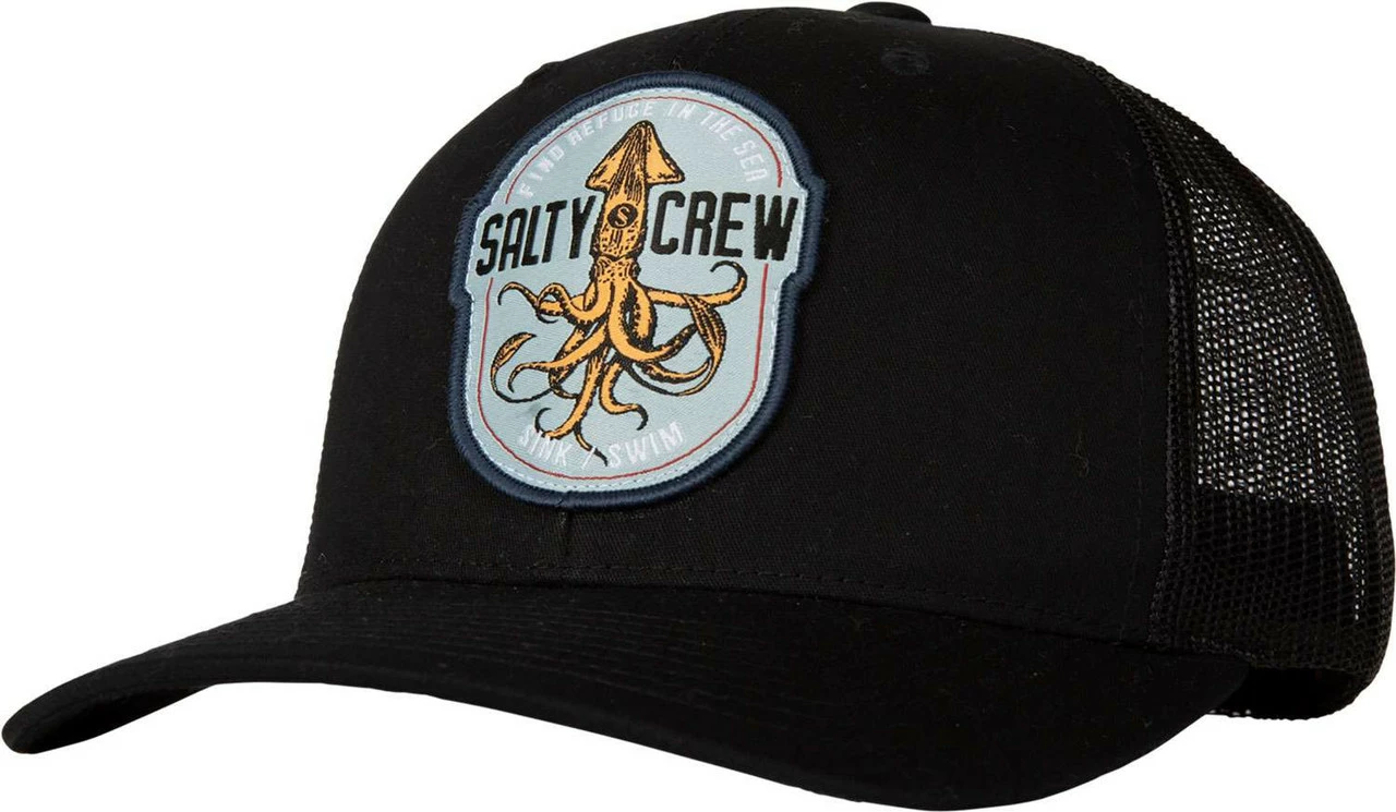 The Salty Crew Colossal Retro Trucker Hats are 6 panel retro snap back trucker hats. Featuring a woven damask patch across the front. These hats are ideal for out on the boat with water resistant coating and mesh back.