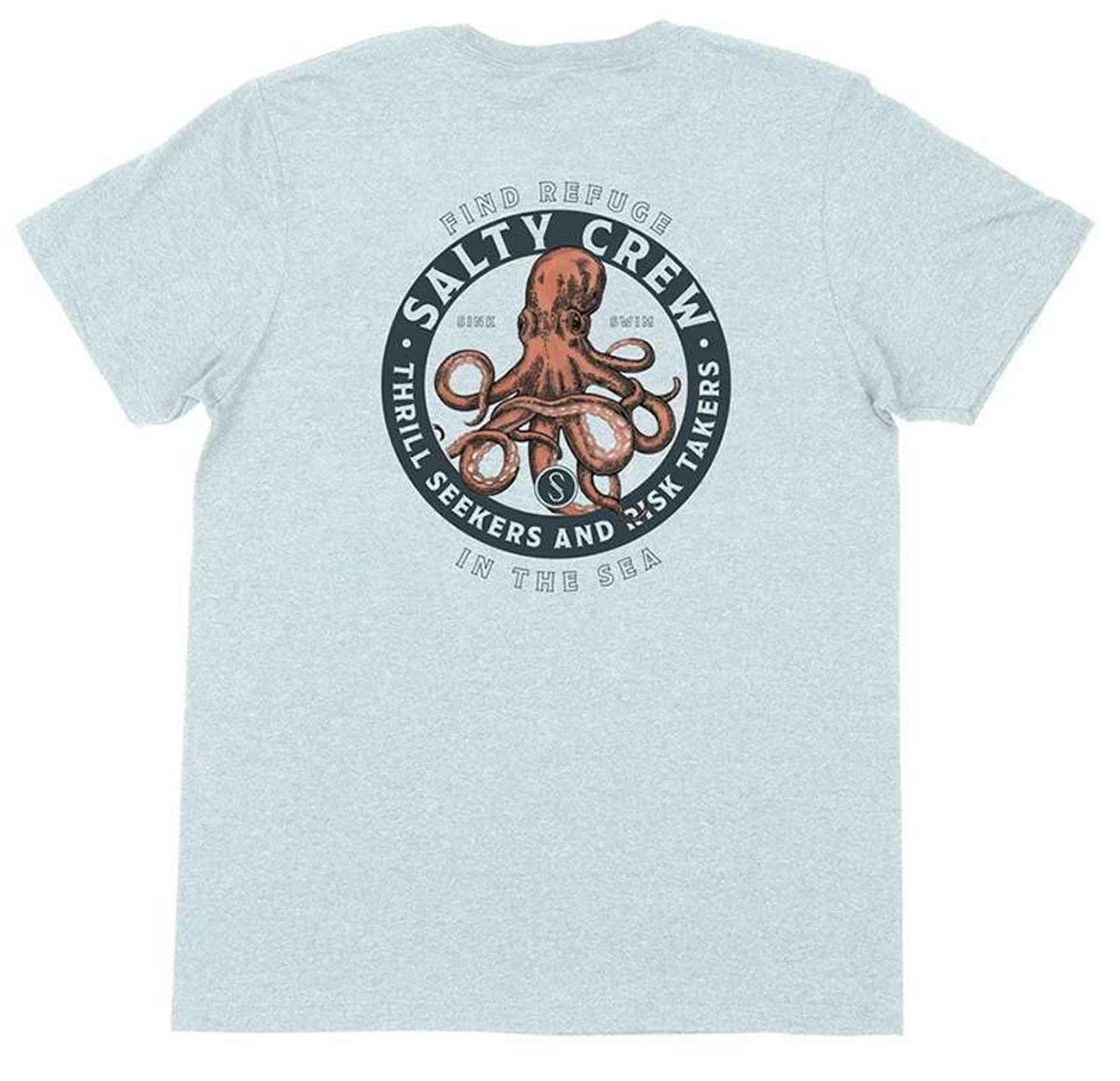 Salty Crew Deep Reach Short Sleeve T-Shirts are designed with a comfortable standard fit. Made with comfortable 100% cotton making these t-shirts ideal for long days out on the water. The Deep Reach tee by Salty Crew features a unique round octopus screen printed design on the back with small version on the front.