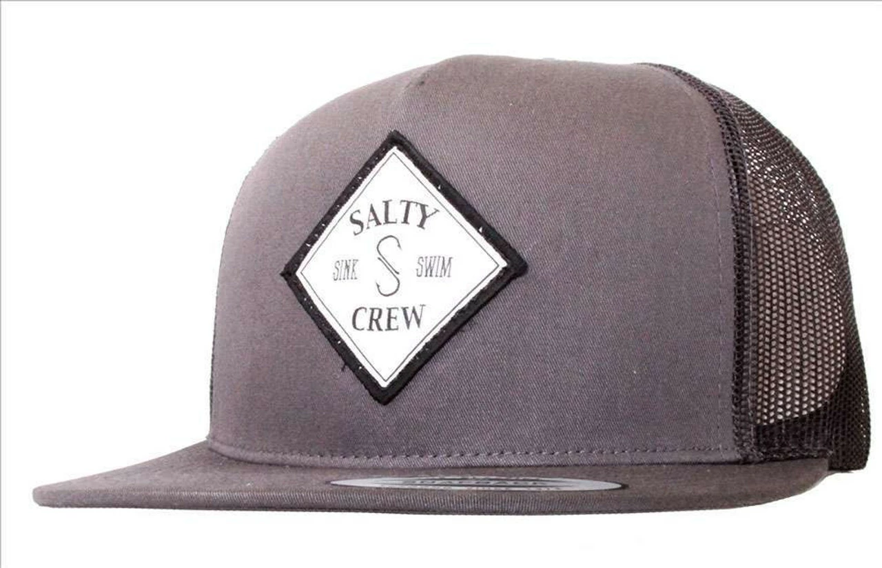 The Salty Crew Tippet Trucker Hat is your classic high quality trucker hat with 5 panel structuring wool blend and classic snap back. This hat features a flat brim and sewn down logo patch.