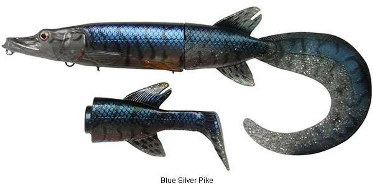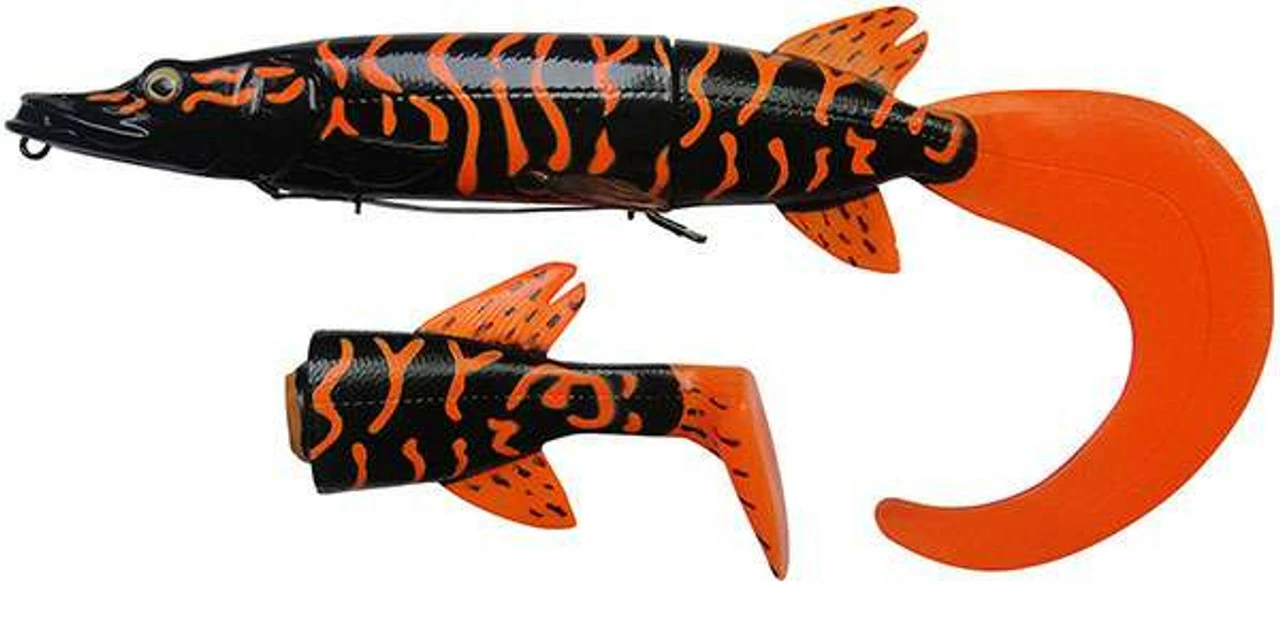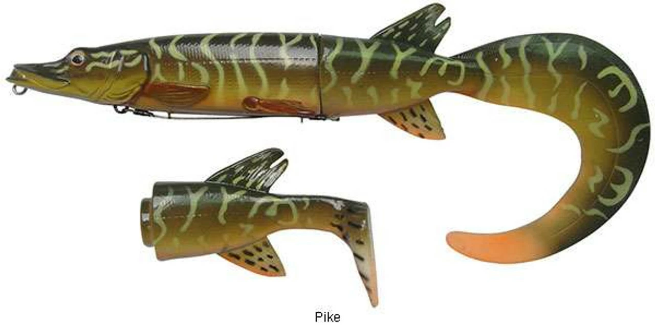 The Savage Gear 3D Hybrid Pike blurs the line between a soft and hard lure. These hard body lures feature replaceable soft tails that draw the most savage strikes from Pike and Musky. Incredibly lifelike, these lures are 3D scanned from an actual jack pike, and painted with realistic colors that make it the ultimate pike/musky lure. Two different tail styles practically give you two lures in one. The classic paddle tail makes this lure look like the real thing, while the oversized ribbon tail attracts fish from great distances.