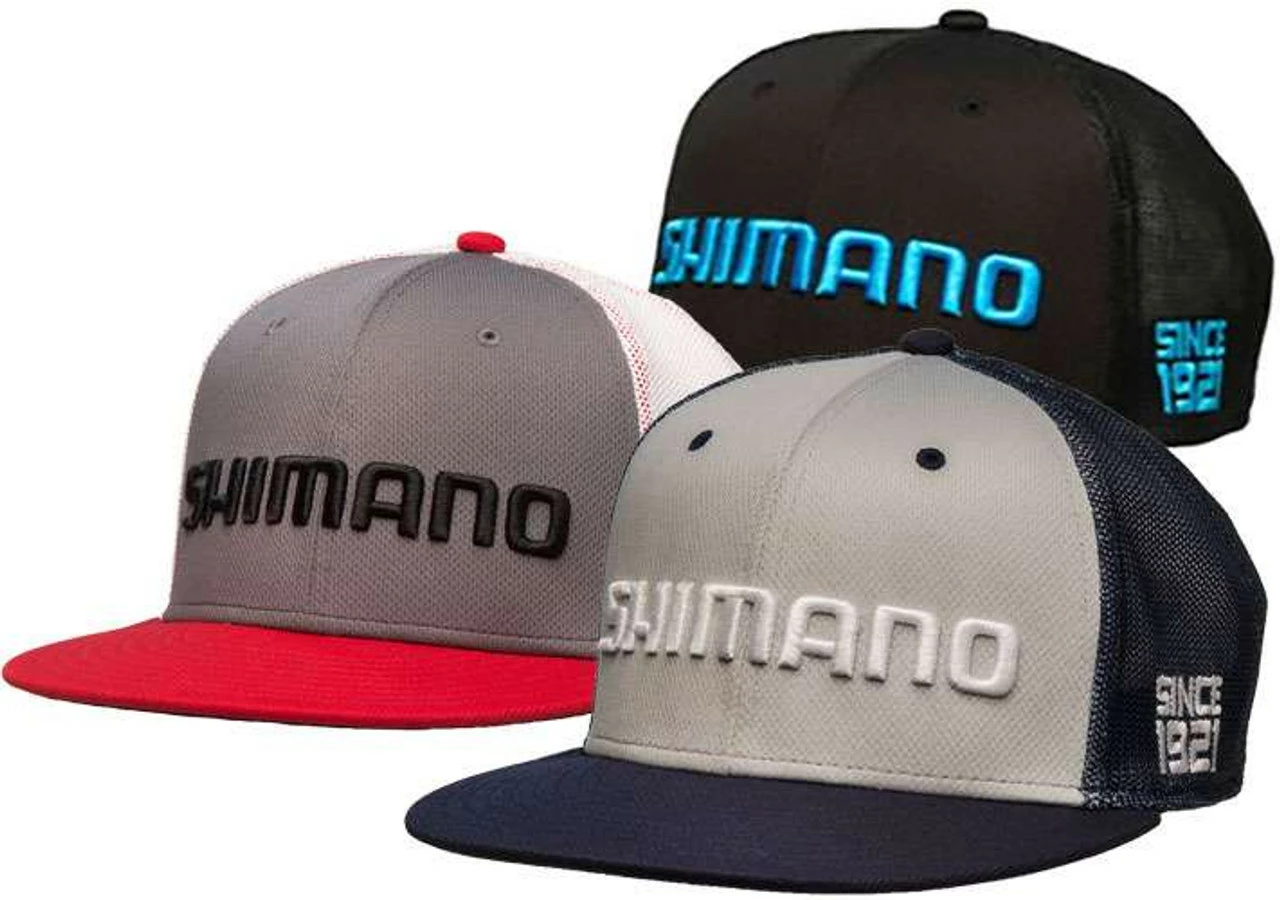 The Shimano Flat Bill Hat features a moisture wicking ProFlex fitted sweatband, with 100% polyester front panels and 100% nylon mesh back panels.