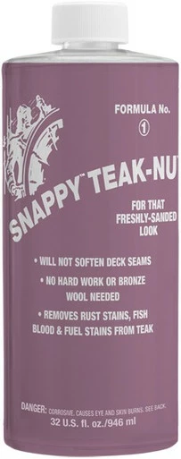 Snappy Teak-Nu Formula No. 1 is step 1 of Snappy’s easy to use two-part teak cleaner and restorer – Must use with Snappy Teak-Nu Formula No. 2 as the chemical reaction between the two products is what makes teak look brand new.