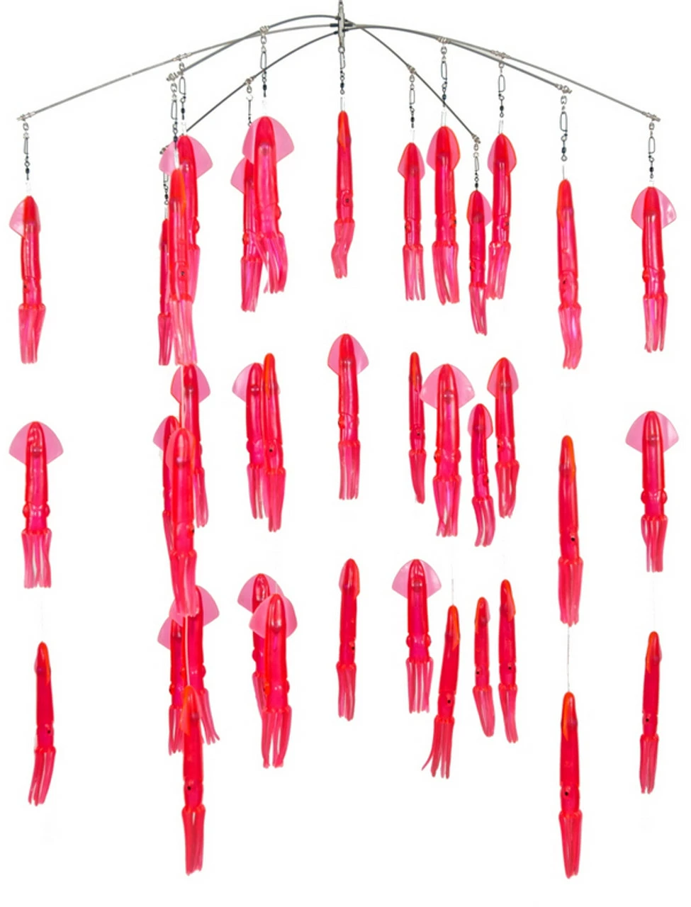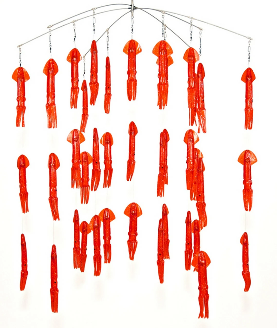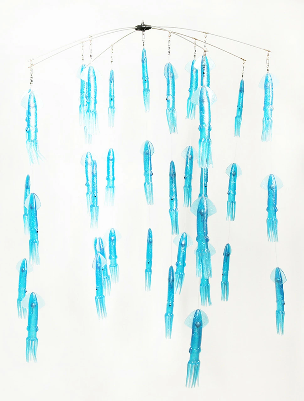 The Squidnation 6 arm 36 inch colored squid dredge will illuminate the water and draw billfish into your spread. This squid dredge is filled with 9 inch colored squids. Each squid is loaded with a hand painted 2 oz egg sinker. All arms are terminated with a swivel for easy breakdown. The dredge comes with a 48x 14inch Squidnation mesh stowage bag. This is the ideal dredge for billfishing.