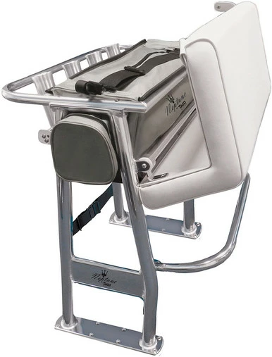 Taco Marine’s Neptune II Leaning Post is designed for smaller center console boats, backed by a 3-year warranty. The Neptune II Leaning Post is constructed of Anodized Aluminum, engineered and built to last. Equipped with an attractive patented soft pack that is easy to remove and provides a convenient tote for fishing gear. Footprint dimension: 14″ x 35″.