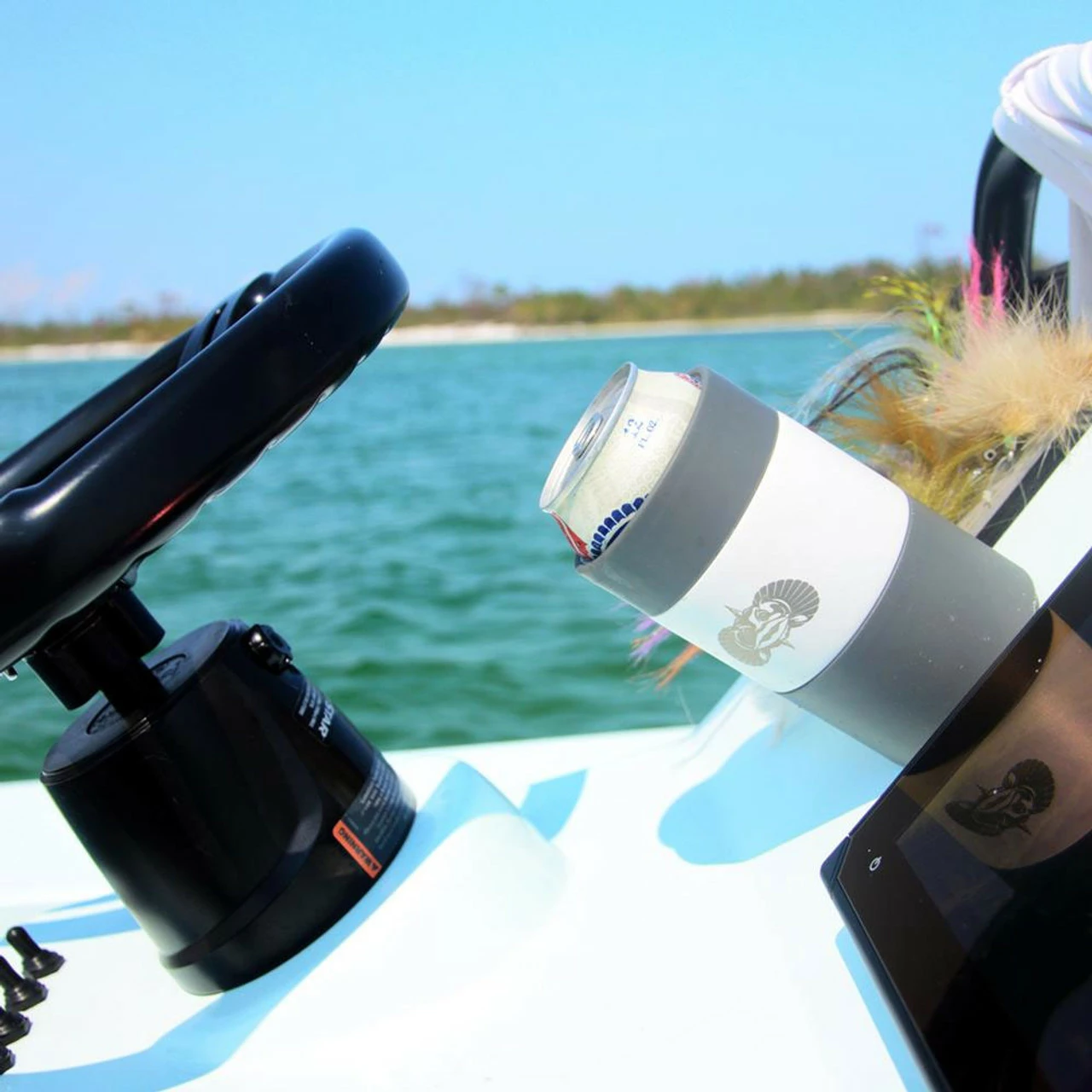 The Toadfish Non-Tipping Can Cooler lets you take your beer anywhere. Sticks to almost any surface with suction cup design. Portable cup holder made with high-grade stainless steel design to keep your beer cold on the go.