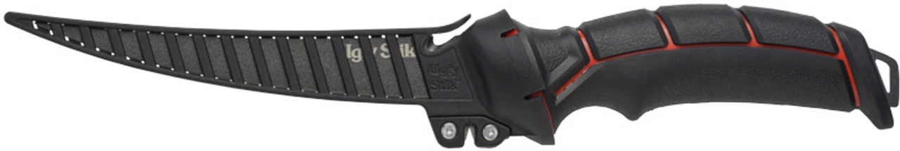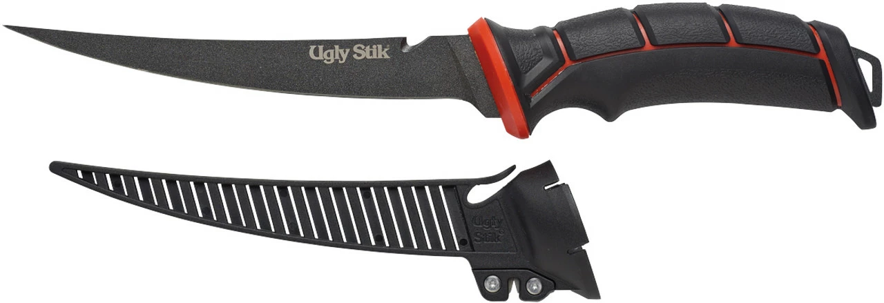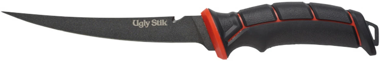 The Ugly Stik Ugly Tools 7 in. Tapered Knife was designed with the angler in mind. This knife features Ugly Tuff Grip, full tang 8CR14 high carbon stainless steel, semi flex, thin blade, and a sweeping curve through tip. An air-through sheath with line cut access is included.