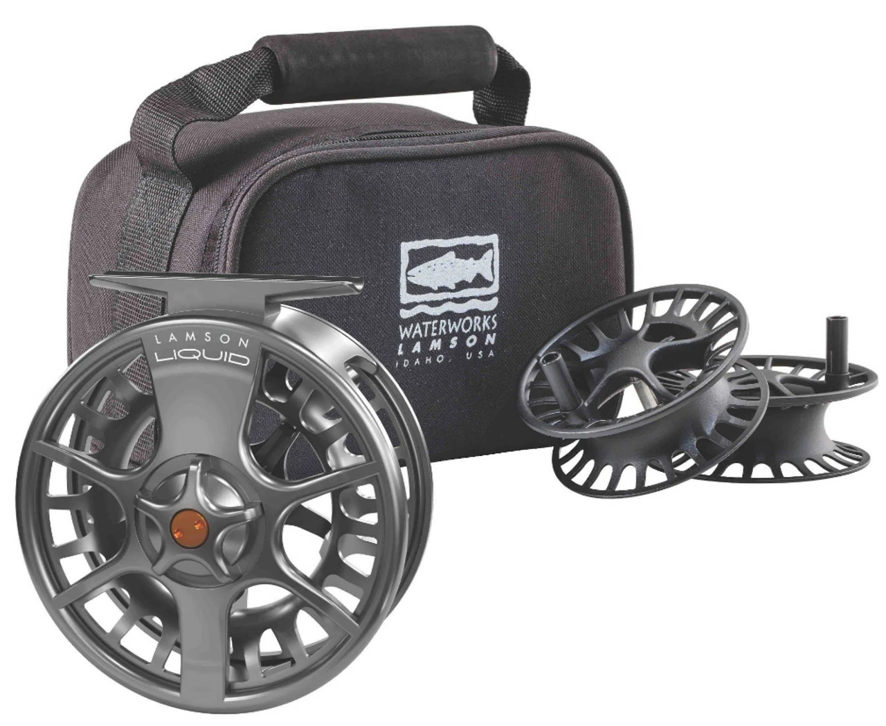 The Waterworks Lamson Liquid Fly Fishing Reel and Spools – 3 Pack includes one Liquid reel and two spare spools in a nylon carrying case all for the price of one reel and one spool. These fly reels are top quality while still being affordable.
