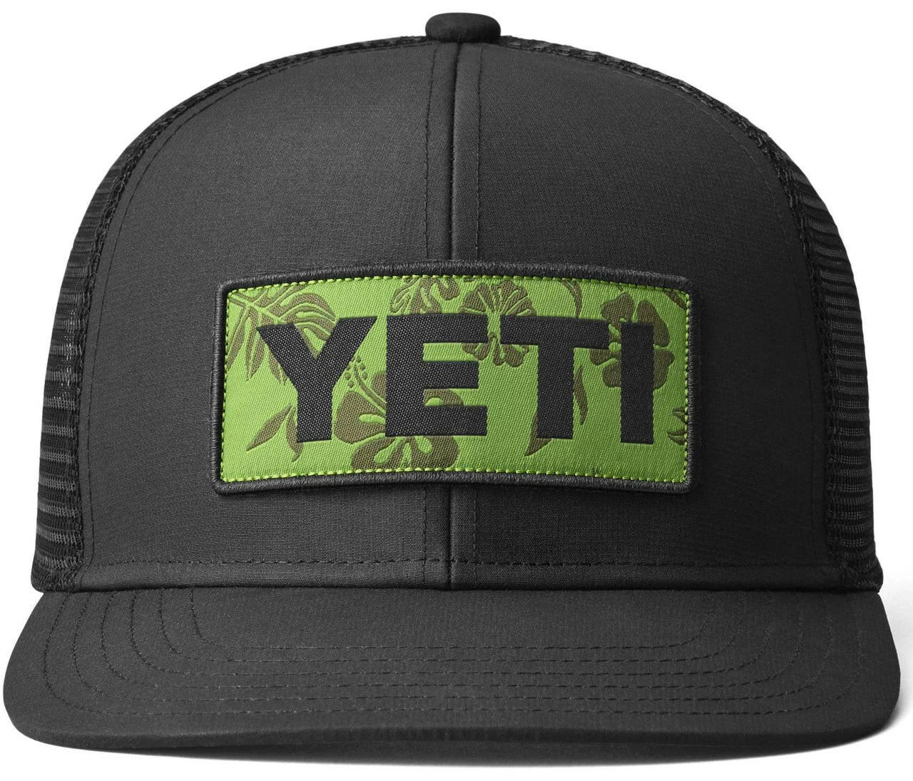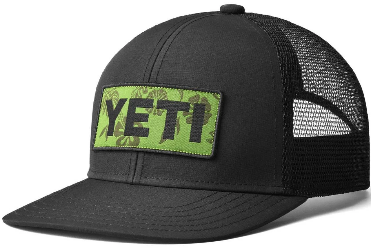 The Yeti Floral Logo Badge Trucker Hat features the Yeti Floral Logo graphic and a mesh back for better breathability.