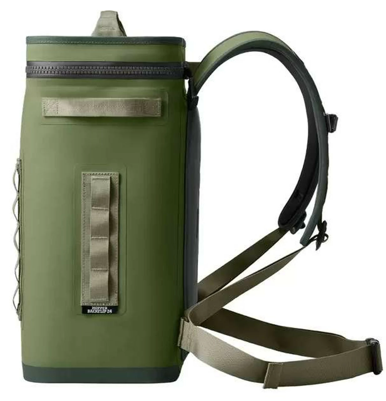 The YETI Hopper Backflip 24 is a soft sided cooler with a taller, wider body than the original YETI Hopper flip. This cooler features a wide-mouth opening for easy access/storage and loading for your food and beverages. It’s made to be carried as a backpack. It’s designed with ergonomic shoulder straps for comfort and made to distribute the weight of your stuff. For more stability and security it includes removable chest strap and waist belt. It’s leakproof and the perfect all day cooler. For anything from fishing to camping.